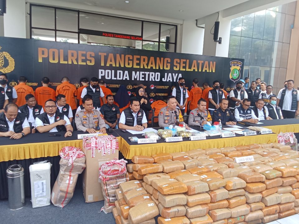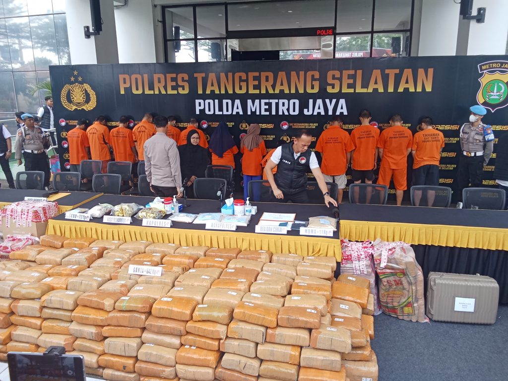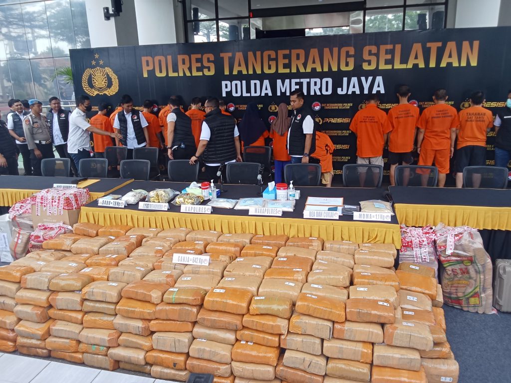Kapolres Tangerang Selatan, AKBP Victor Inkiriwang mengatakan pihaknya berhasil mengamankan barang bukti berupa ganja seberat 642 kg, 7,8 Kg Sabu dan Pil Extasi 1, 1 Kg.