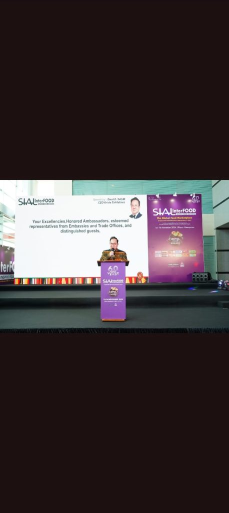 Dalam sambutannya di pembukaan SIAL Interfood 2024. Chief Exccutive Officer (CEO) Krista Exhibition. Daud D. Salim, mengungkapkan “Kami merasa bangga dapat kembali menghadirkan SIAL Interfood di Indonesia untuk yang ke-25 kahnya Pameran ini bukan sekadar ajang untuk memamerkan inovasi dan tren terkini di industri makanan dan minuman tetapi juga sebuah platform strategis yang memainkan peran penting dalam mendukung ketahanan pangan nasional Pameran ini memberikan peluang bagi para pelaku Industri dari berbagai skala.