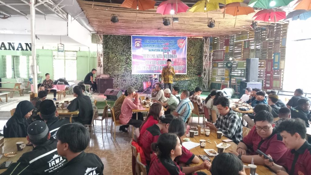 Palembang – Dalam rangka menyambut Pemilihan Aliansi Pemuda Lintas Agama Sumatera Selatan Gelar Deklarasi Pilkada Aman dan Damai Serta Ajak Seluruh Lapisan Masyarakat Sumsel Saling Bersinergi dan Wakil Gubernur, Walikota dan Wakil Walikota serta Bupati dan Wakil Bupati di Sumatera Selatan tahun 2024, Aliansi Pemuda Lintas Agama Sumatera Selatan (Sumsel) menggelar acara Doa Bersama dan Deklarasi Pemilihan Kepala Daerah (Pilkada) Damai, dengan tema “Bersama Kita Wujudkan Pilkada Tahun 2024 di Sumatera Selatan Yang Aman Damai dan Berkualitas”, yang dilaksanakan di Gun’s Cape Palembang, Rabu (20/11/24).