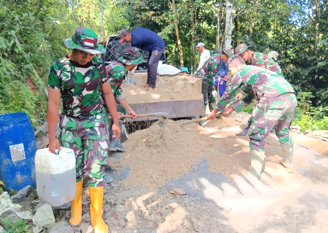 beritalennus.co.id – Bogor – Walaupun pada saat ini berbarengan dengan Bulan Ramadhan 1446 H, tak mengendurkan semangat TNI dan masyarakat yang tergabung dalam Satgas TMMD ke -123 Kodim 0621/Kab.Bogor Tahun 2025 terus mengejar target pengecoran jalan di Kampung Wanakarya, Desa Karacak,Kec.Leuwiliang.