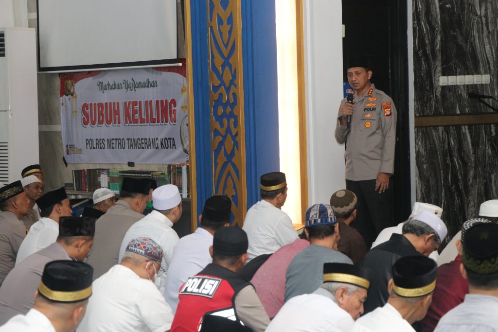 beritalennus.co.id TANGERANG KOTA — Kapolres Metro Tangerang Kota, Kombes Pol Zain Dwi Nugroho melaksanakan safari Ramadhan 1446 Hijriah/2025 Masehi melalui kegiatan Subuh Keliling (Suling) di Masjid Rahmatan Lil’Alamin di Perumahan Modern Land Jalan Taman Golf Boulevard Raya, Kelurahan Buaran Indah, Kecamatan Tangerang. Senin, (10/3/2025).