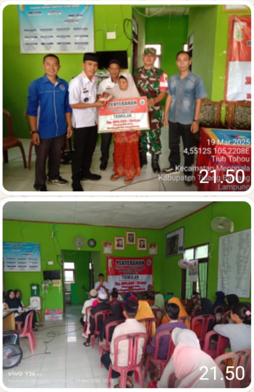 beritalennus.co.id Tulang Bawang Lampung – Pemerintah kampung tiyuh Tohou Kecamatan mengala Kabupaten Tulang Bawang Lampung Telah melaksanakan program pembagian Bantuan Langsung Tunai (BLT) Dana Desa tahun 2025 dari bulan (januari sampai di bulan Maret) dan program ini bertujuan untuk membantu keluarga penerima manfaat (25 KPM) yang terdampak ekonomi. Rabu. (19 Maret 2025)