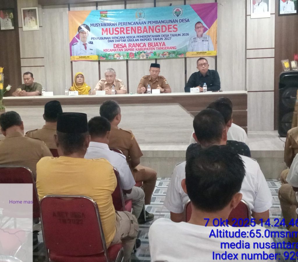 beritalennus.co.id TANGERANG – Musyawarah Rencana Pembangunan ( Musrenbang ) TA 2026 yang selalu dilaksanakan disetiap Daerah Secara nasional, sudah seharusnya dilaksakan dalam penggunaan anggaran dalam perencaan seperti pembangunan Insfratruktur jalan, sarana bagi umum, ketahan pangan dan lainnya sesuai usulan dari setiap daerah, seperti dalam Musyawarah Penyusunan Rencana Kerja Pemerintah Desa ( RKPDES ) tahun 2026 di Desa Ranca buaya Kecamatan jambe Kabupaten Tangerang diharapkan nantinya dapat terselesaikan dengan baik dan bermanfaat bagi masyarakat.07/10/2025.